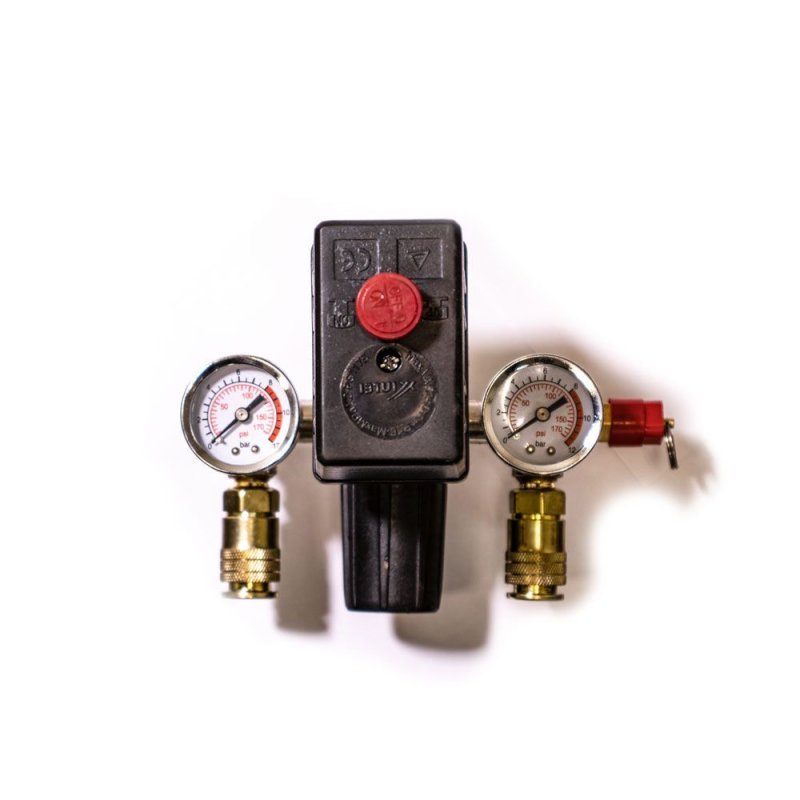Реле давления или прессостат - универсальный электромеханический узел компрессоров AURORA. Блок, с помощью регулировочного винта, задаёт значения давления при котрых компрессор будет включать и отключать закачку воздуха в ресивер.