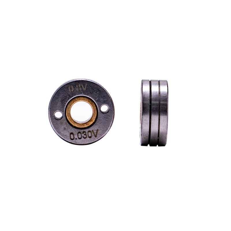 Подающий ролик для стальной проволоки 0.6-0.8 мм для сварочных полуавтоматов AuroraPro SKYWAY 300-330. Данный ролик является сменным элементом подающего механизма сварочного аппарата. Он обеспечивает стабильную и равномерную подачу проволоки в зону сварки. Размер канавки ролика подбирается в соответствии с диаметром сварочной проволоки. Подающий ролик имеет две направляющие канавки, при изменении сечения проволоки нужно только перевернуть ролик нужной стороной. Используется для стальной проволоки, так как ролик имеет V-образную форму канавки.