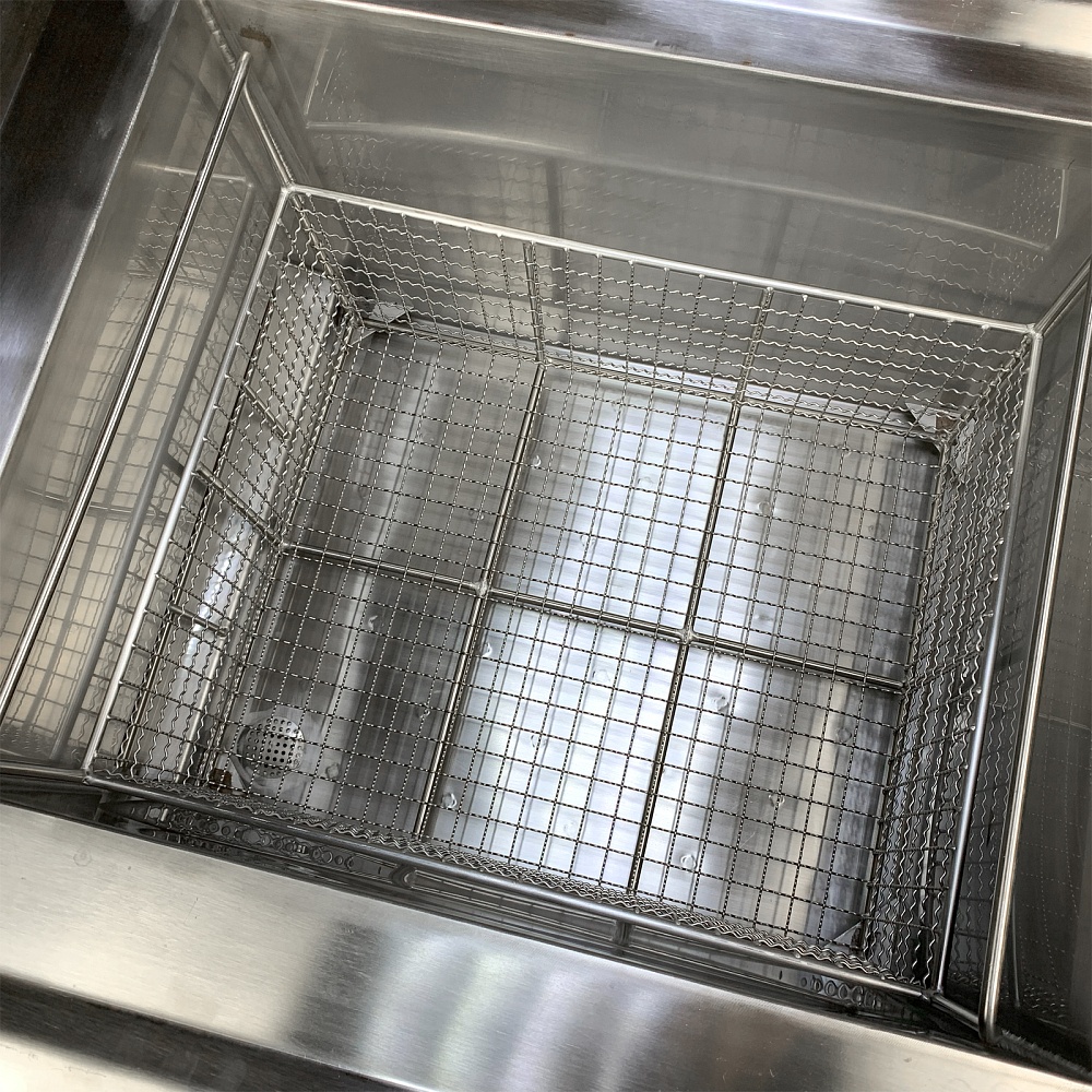 Специальная корзина позволяет избегать контакта кожи с реагентом. Дренажный клапан дает возможность без усилий слить отработанную жидкость без необходимости перемещать ультразвуковую мойку по рабочему пространству.