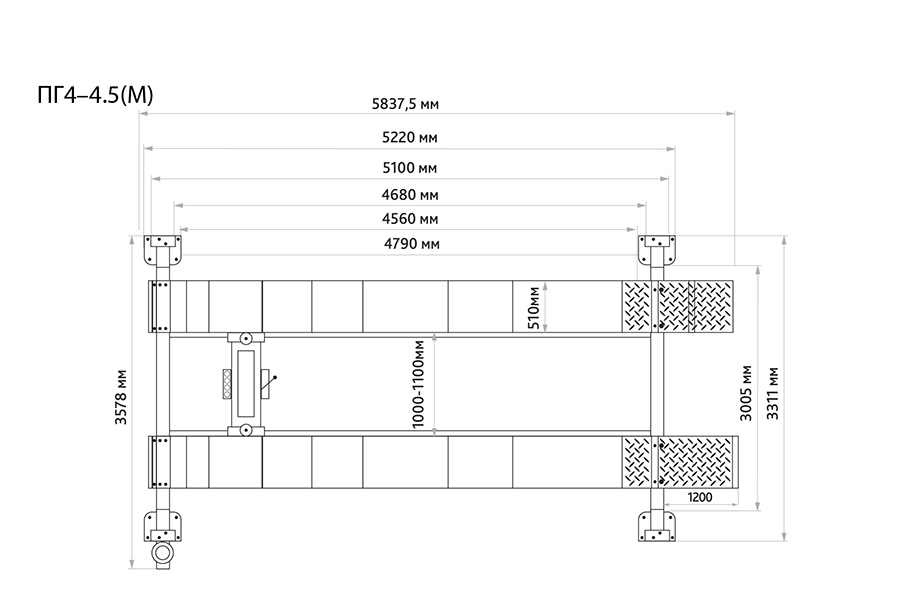 ПГ4-4.5 (М) Подъемник 4-стоечный для сход-развала 4.5 тонны с траверсой на 2 тонны 380В Станкоимпорт купить в Волгограде цена ✅ - Все для СТО