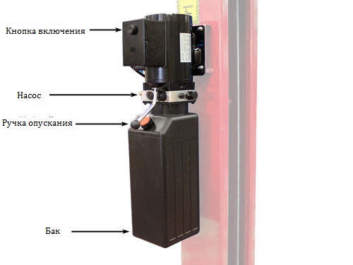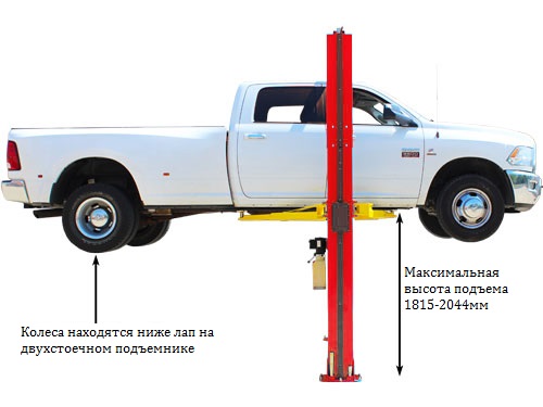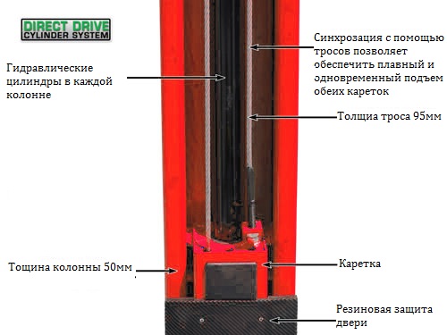 Двухстоечный электрогидравлический подъемник с верхней синхр, грузоподъемность 4.0 т, высота колонны 4231/4431мм, механическое управление стопорами на одной колонне.