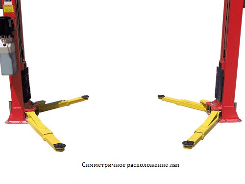 Двухстоечные электрогидравлические подъемники с верхней синхронизацией, симметричное или ассиметричное (по выбору пользователя) расположение стоек.