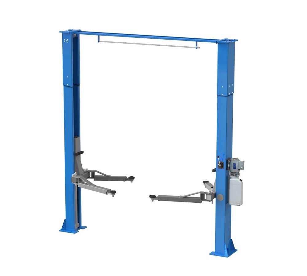 Электрогидравлический двухстоечный подъемник для легковых автомобилей, внедорожников и легкого коммерческого транспорта общей массой до 5т Классическая симметричная конструкция с удлиненными трехсоставными подхватами прекрасно подходит для работы с длиннобазными автомобилями Самая жесткая и устойчивая конструкция Нет порога между колоннами. Свободный заезд автомобиля по ровному полу. Нет ограничений при работе со вспомогательным мобильным оборудованием под автомобилем: тележки, трансмиссионные стойки и пр. Система синхронизации, расположенная сверху, не подвержена износу из-за контакта с влагой и грязью
