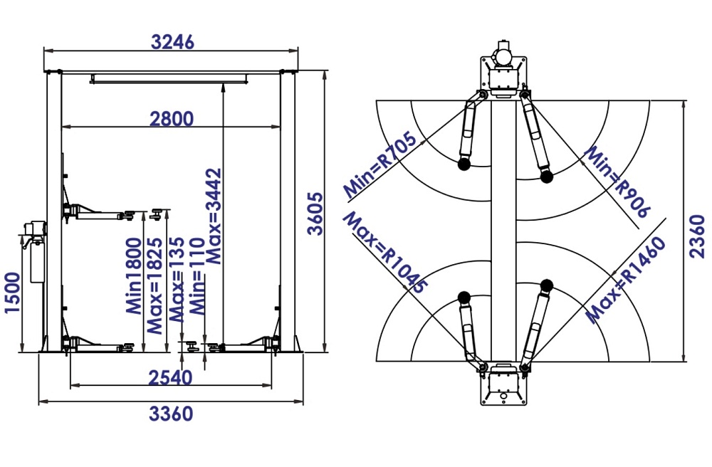 ·         Два гидравлических цилиндра, что приводит к увеличению срока службы подъемника. Нагрузка распределяется равномерно на 2 цилиндра.