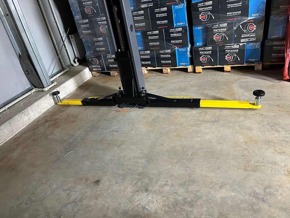 Электрогидравлический 2-х стоечный автомобильный подъёмник с нижней синхронизацией и разблокировкой на одной колонне грузоподъемностью 4,5 тонны.