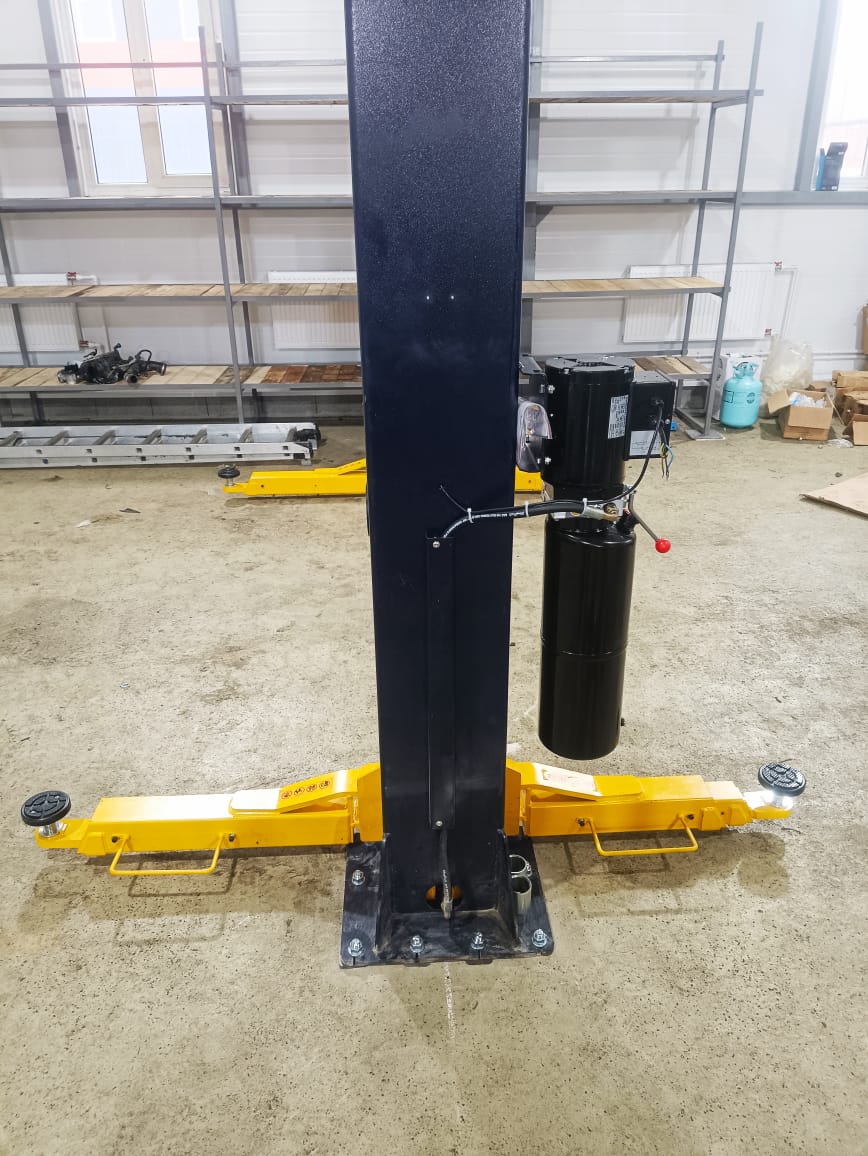 Подъемник двухстоечный электрогидравлический, асимметричный, двухцилиндровый, г/п 4000 кг., 2,2 кВт, высота подъема 1890 мм., расстояние между стойками 2750 мм., с нижней синхронизацией.