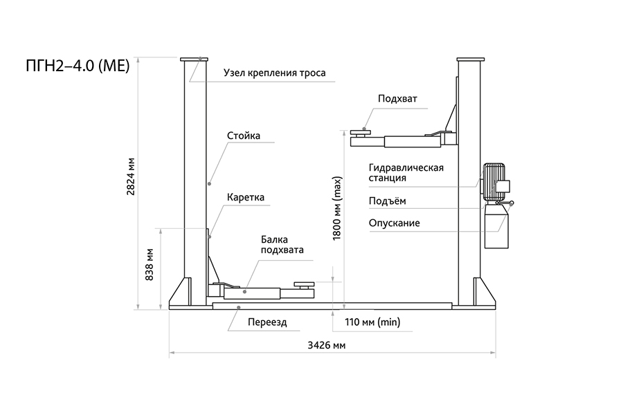 | Грузоподъемность | 4000 кг | Снятие стопоров | на колонне |
