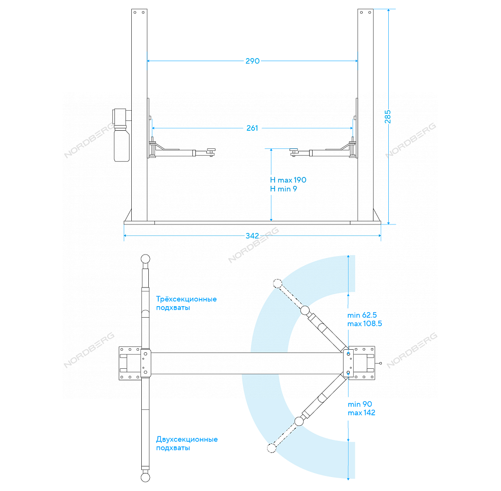 Двухстоечный подъемник NORDBERG N4120B-4G_3+2_220 – безопасное и надежное оборудование для проведения различных видов работ по обслуживанию и ремонту автотранспорта в автосервисах и СТО.
