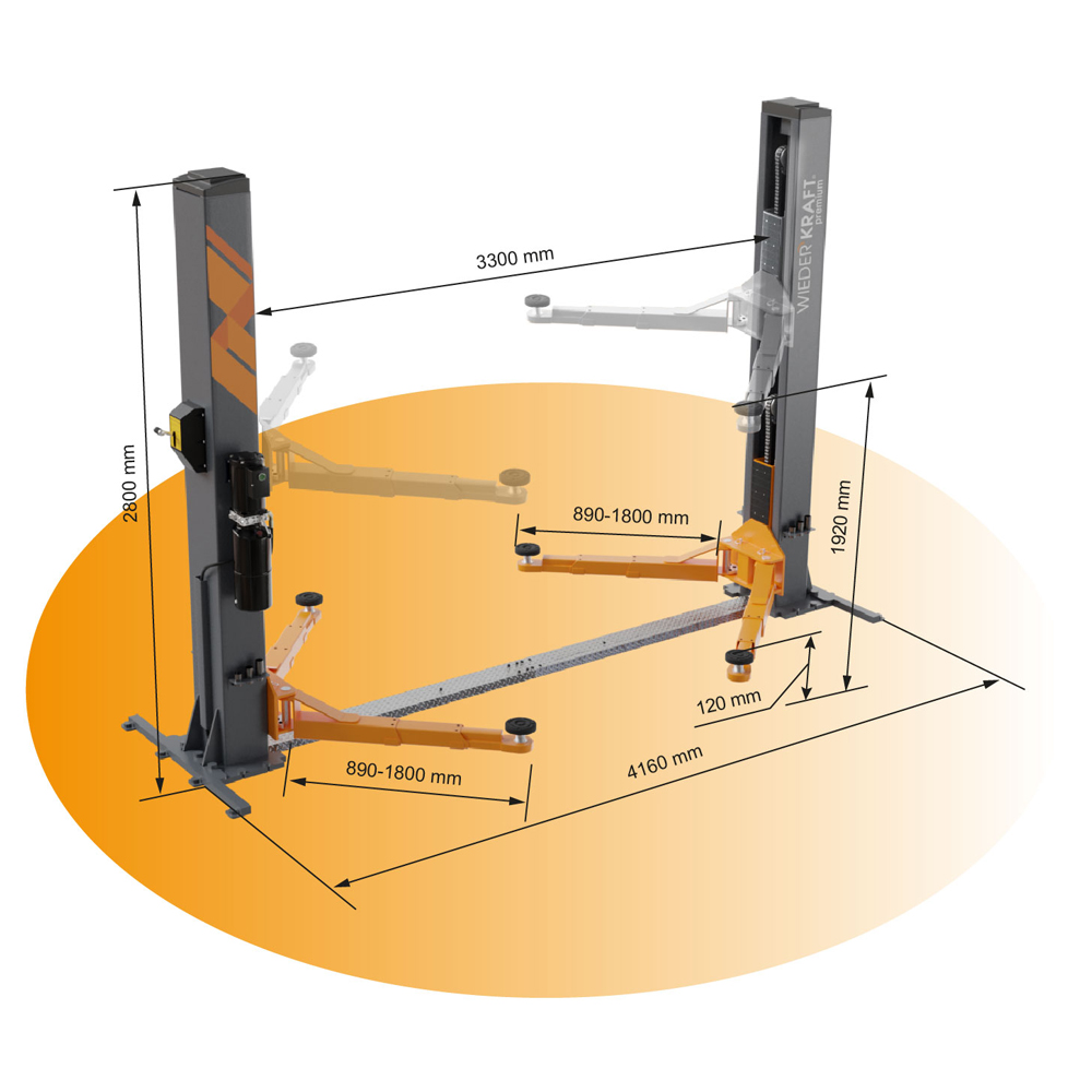 Двухстоечный подъемник с нижней синхронизацией WiederKraft WDK-524N грузоподъемностью 5000 кг. Отличается высокой надежностью конструкции: усиленный профиль подъемных кареток и лап, направляющие каретки из запатентованного полимера, стальные шкивы (сталь 45), стальные тросы 10 мм, толщина металла 6,5 мм. Управление стопорами с одной колонны экономит время при спуске автомобиля. Наличие концевого ограничителя подъема обеспечивает дополнительную безопасность во время эксплуатации подъемника. Конфигурация подъемника позволяет обслуживать все самые популярные типы автомобилей: от А-класса до микроавтобусов.