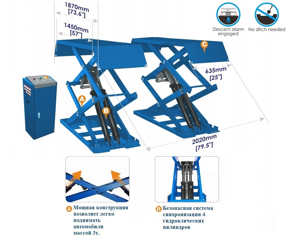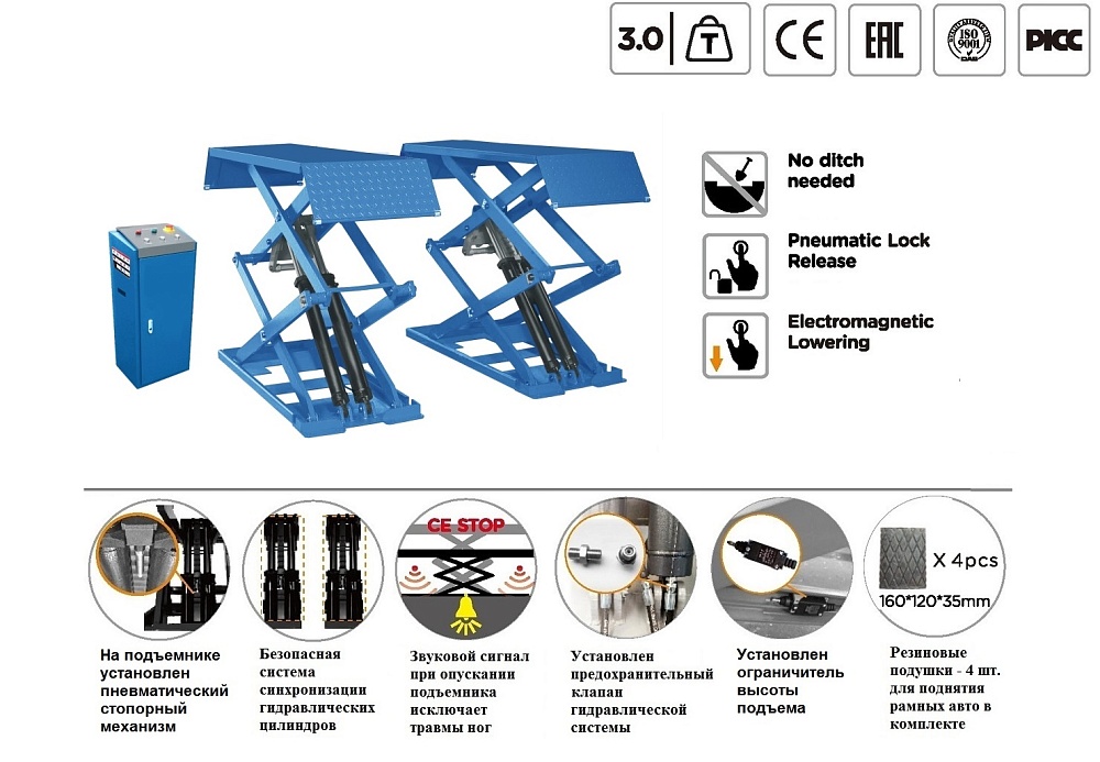 ES-1113M Подъемник ножничный г/п 3 т напольный купить в Волгограде цена ✅ - Все для СТО