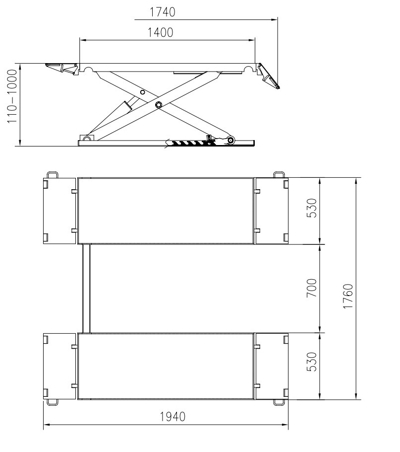 FORBI 3.5G/220 KraftWell Подъемник комплект (2 платформы, 2 гидр, цилиндра, гидростанция) ножничный, электрогидравлический, г/п 3500 кг., 220 В, 2,2 кВт, высота подъема 1000 мм., размеры платформ 1400-1940х530 мм., клиренс 110 мм.