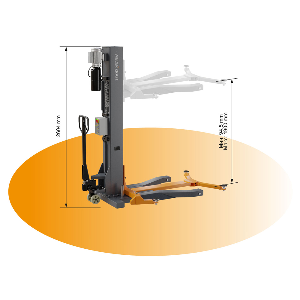 WDK-ML4030 Подъемник гидравлический 3 т, одностоечный, мобильный Wiederkraft