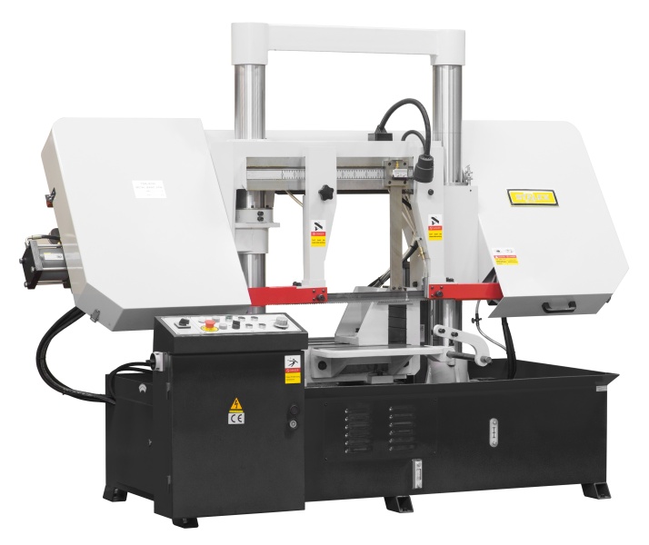 Двухстоечные ленточнопильные станки имеют 2 вертикальные стойки (колонны) большого диаметра по которой вертикально перемещается горизонтальная пильная рама.