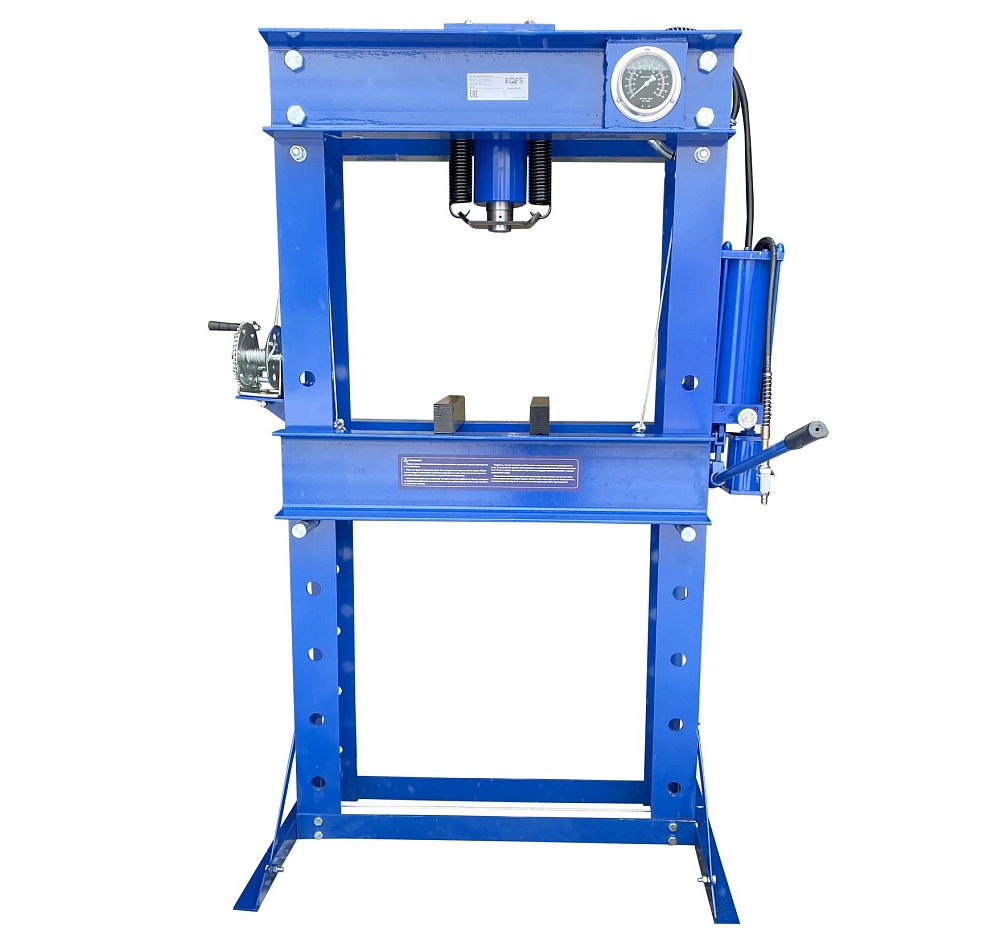 · Пресс укомплектован гидравлическим ручным насосом и пневмогидравлическим с максимальным усилием 50 тонн.