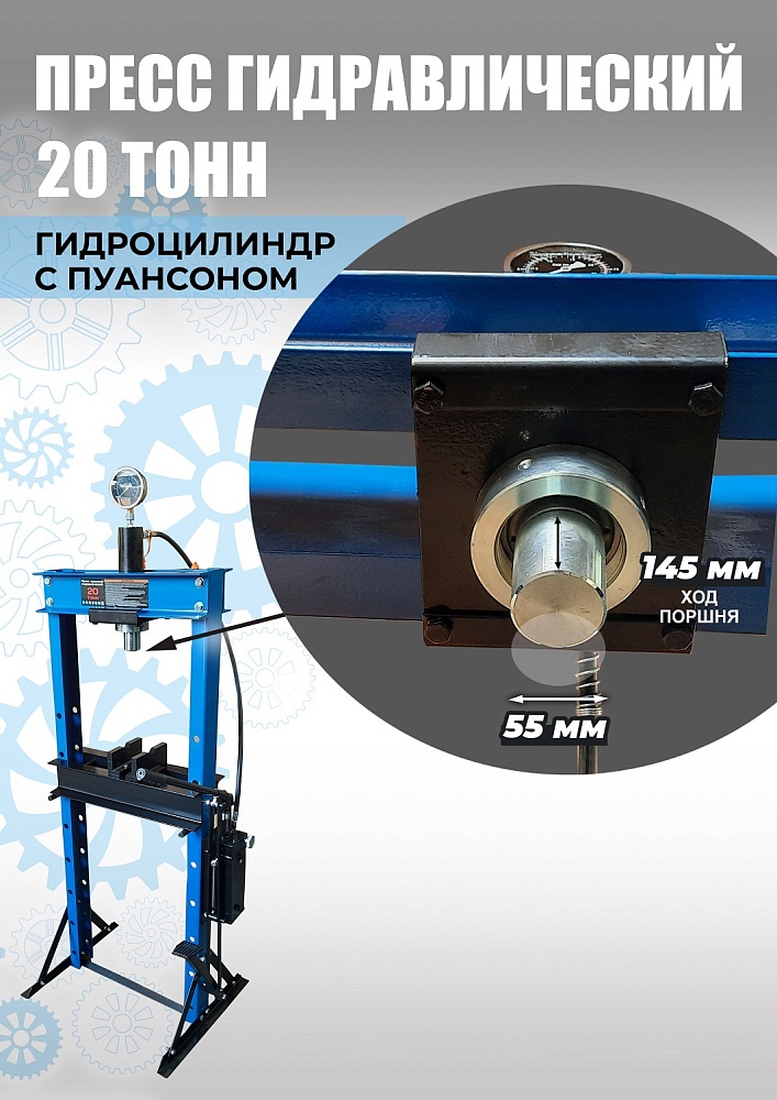 Пресс гидравлический ножной / ручной для автосервиса, усилие 20 т. «Свободные руки». ножной / ручной 20 тонн. Пуансон 0-145 мм. Рабочее окно 500х1110 мм. Доставка по РФ и ТС. Поршень приводится в действие нажатием на ручку или педаль. Рекомендуется для выпрессовки деталей машин, втулок и т.п. в автосервисе, Гараже и СТО. Гидроцилиндр с пуансоном имеет возможность перемещения по всей ширине станины. Подъёмная площадка регулируется по высоте и фиксируется в требуемом положении.