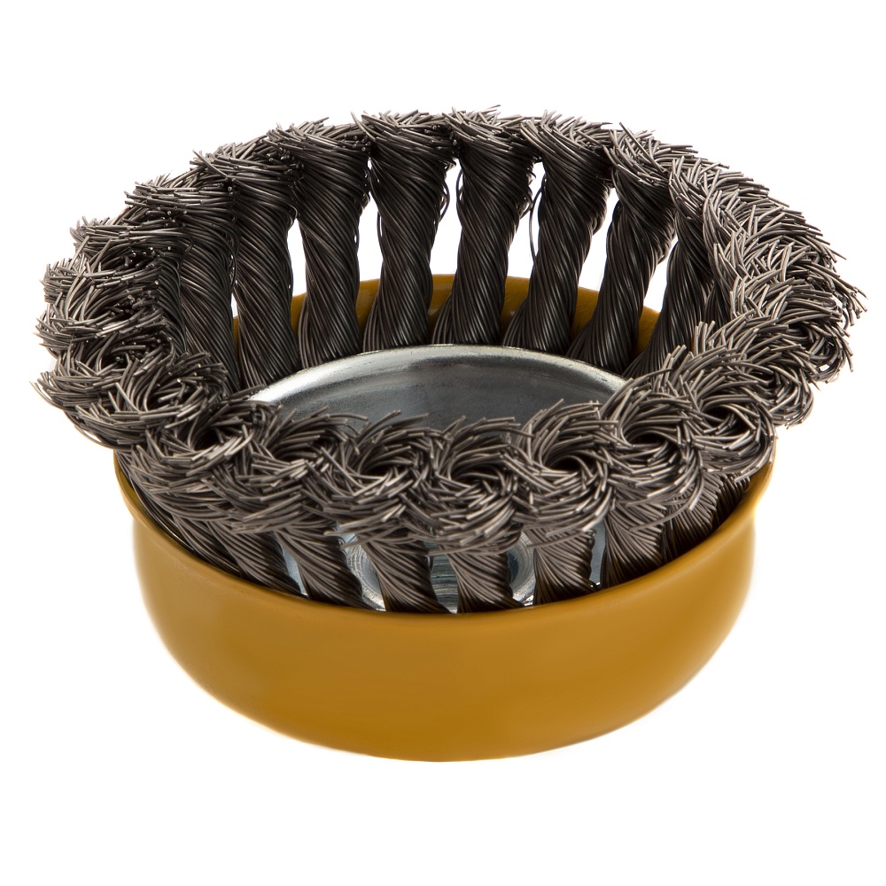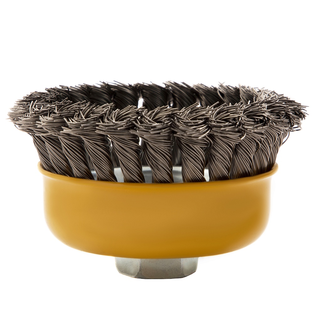 Щетка для УШМ, 100 мм, "Чашка", крученая нержавеющая проволока 0.5 мм, М14 Denzel купить в Волгограде цена ✅ - Все для СТО