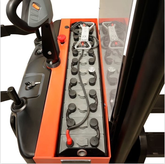 BPLW 1600 55 RAKUDA, Самоходный электрический штабелер, нагрузка 1600 кг., высота подъема 5500 мм, с платформой для оператора, АКБ 24в, зарядное устройство 24в/40а, контроллер Curtis