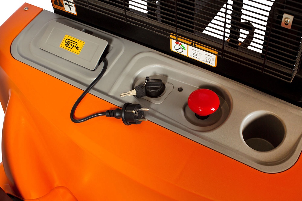 Штабелер оснащен удобным управлением через проводной пульт, который позволяет оператору контролировать все функции устройства, находясь рядом с ним. Это значительно упрощает процесс погрузочно-разгрузочных работ и повышает эффективность труда.