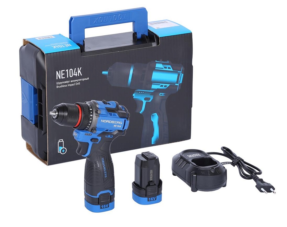 Шуруповерт аккумуляторный макс.диам. сверла 10 мм, 16 В, 60 Нм с 2 аккумуляторами и зарядным уст-вом NORDBERG NE104K купить в Волгограде цена ✅ - Все для СТО