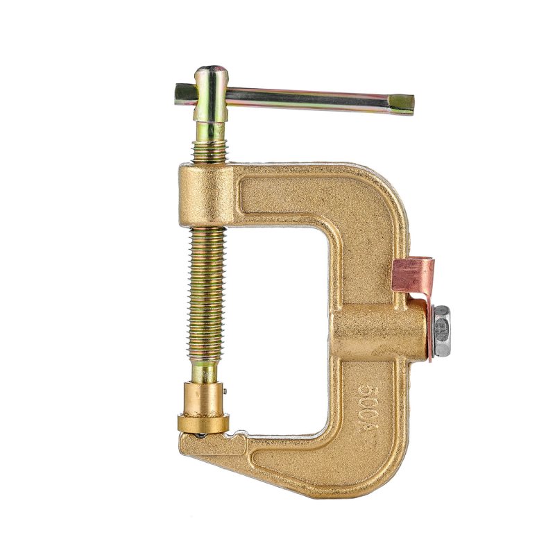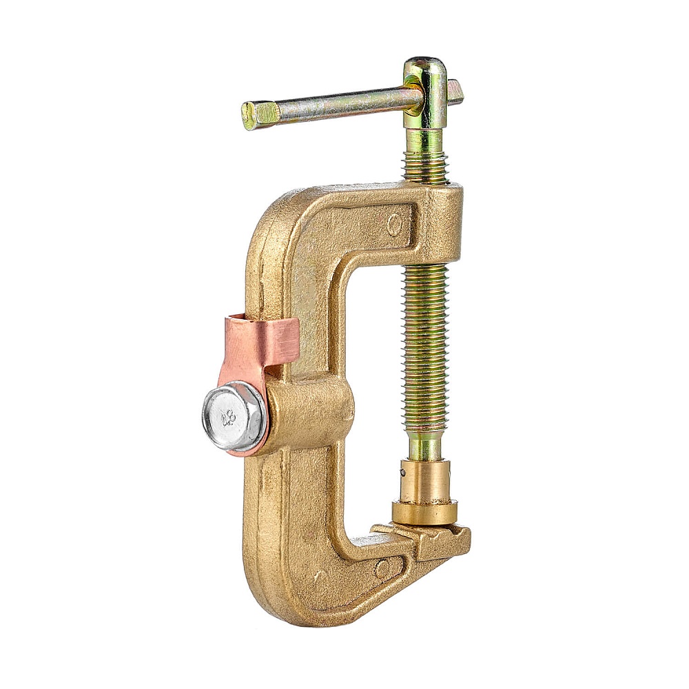 Клемма заземления КЗ-53 рассчитана на сварочный ток до 500 Ампер. Гарантирует плотный контакт в месте подключения. Струбцина состоит из G-образного основания с креплением под кабель и винтового контактного упора. Резьба на винтовом контактном упоре струбцины 12 мм. Ширина губок составляет 16 мм.