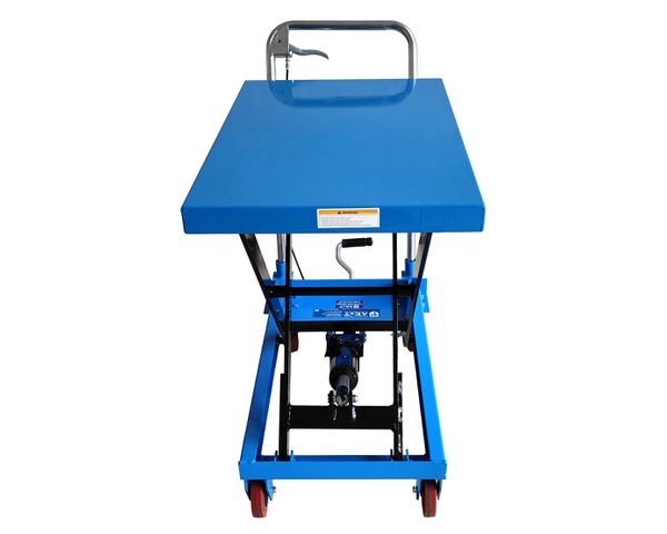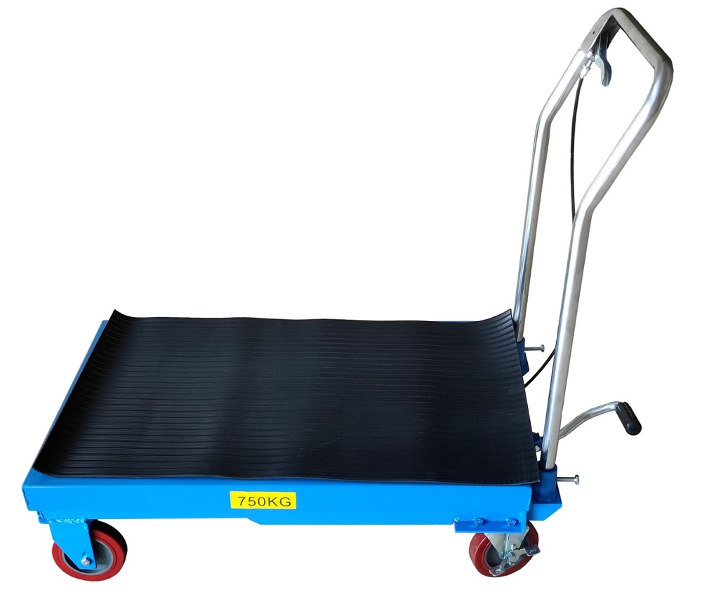 Тележка надежна и долговечна, очень проста в использовании. Для подъема груза на платформе нужно просто несколько раз надавить на педаль. Скорость и ход опускания платформы контролируется положением рукоятки.