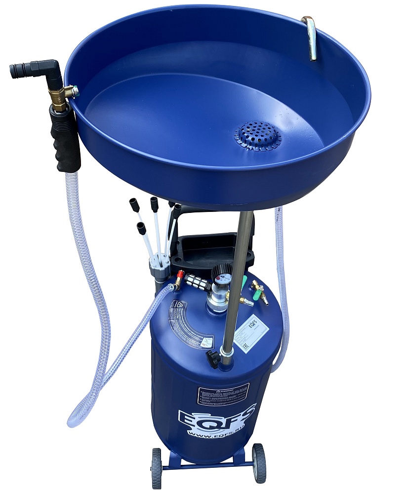 Установка для слива/откачки масла через щупы. Регулировка высоты чаши 970-1570мм. Комплектация: щупы - 5 гибких разного диаметра, манометр (давление/вакуум), лоток, прозрачная трубка для контроля «отработки» в баке. Подключение к пневмолинии - быстросъём. Ёмкость 90л. = Бак 80л + сливная воронка 10л.