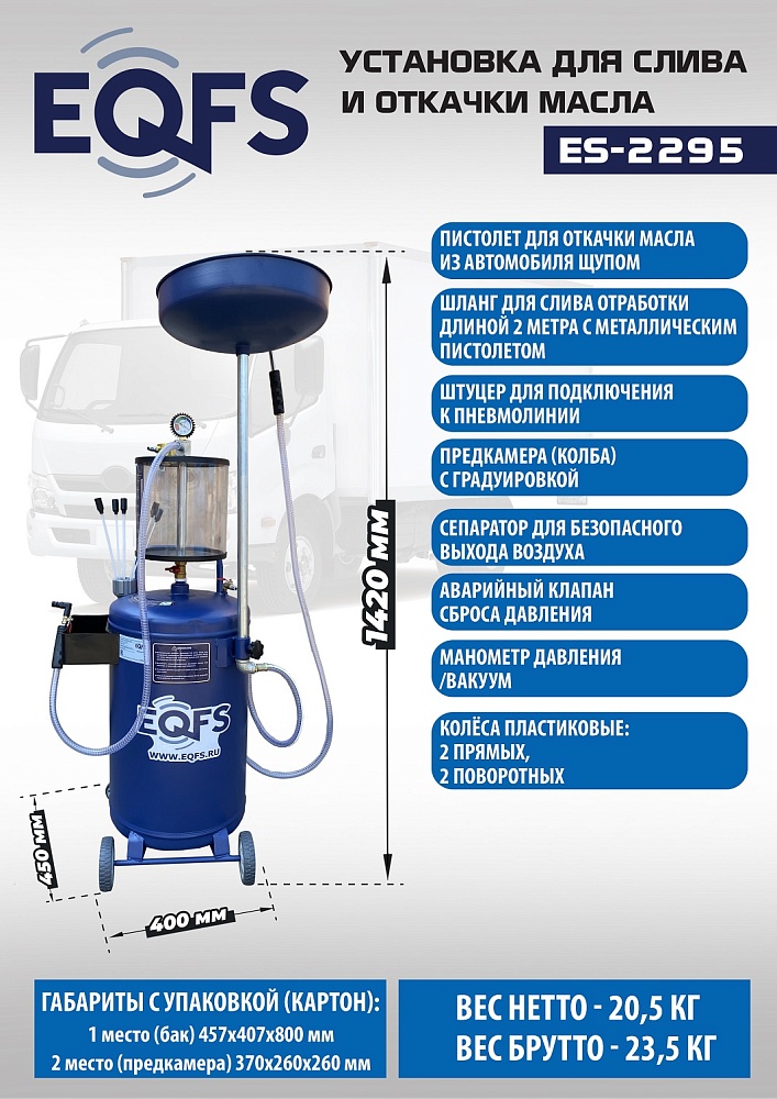 ES-2295 Установка для слива отработанного масла купить в Волгограде цена ✅ - Все для СТО