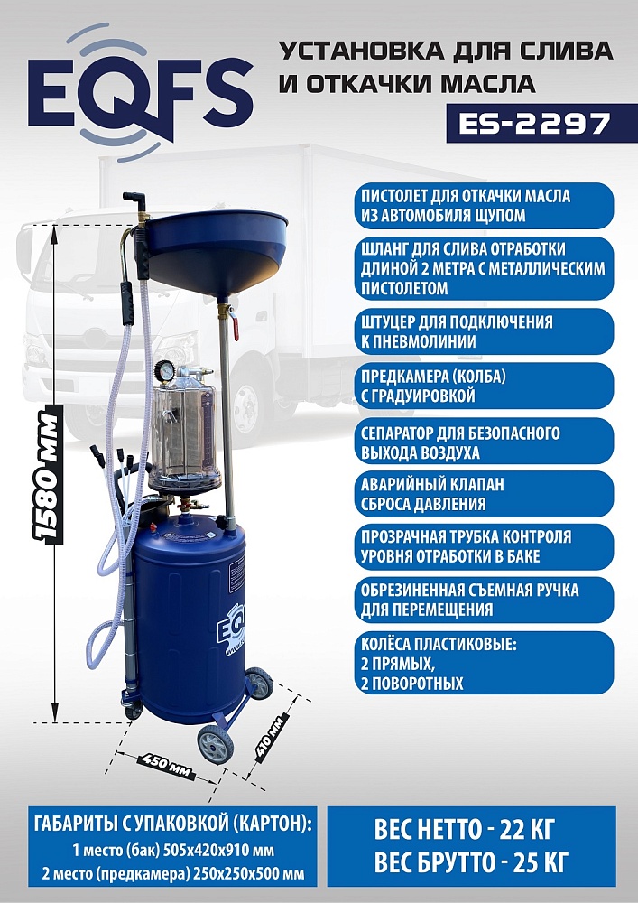 ES-2297 Установка для слива отработанного масла купить в Волгограде цена ✅ - Все для СТО