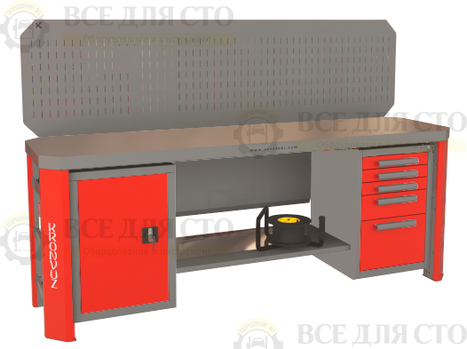 • боковые полочки позволяют размещать рабочий инвентарь, комплектующие, расходные материалы небольшого размера;